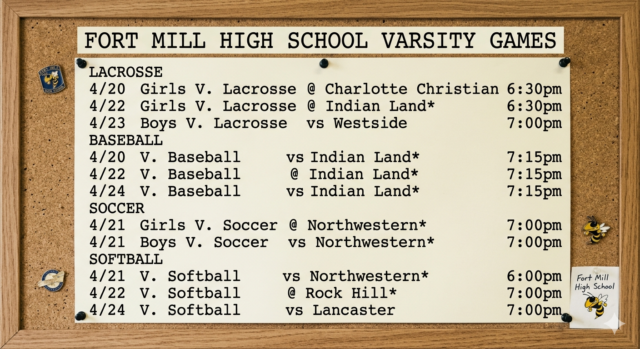 It’s a packed week for the Fort Mill Yellow Jackets as they gear up for a series of high-stakes matchups across the diamond, the field, and the pitch. From crucial region battles against Northwestern and Indian Land to non-conference tests in Charlotte, the Yellow Jackets are set for a grueling final stretch ahead of post season action.